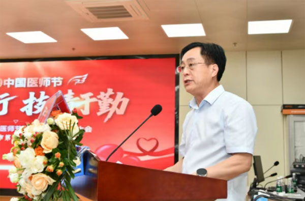 随后,党总支书记杨琛代表医院领导班子向全体医师致以节日问候,向受表彰者表示热烈祝贺,并对全体医师提出殷切期望:要“守初心”,将对生命的敬畏融入每一次问诊、每一台手术;要 “强本领”,以钻研劲头持续提升服务质量;要 “筑和谐”,用真诚沟通架起医患同心的桥梁。
